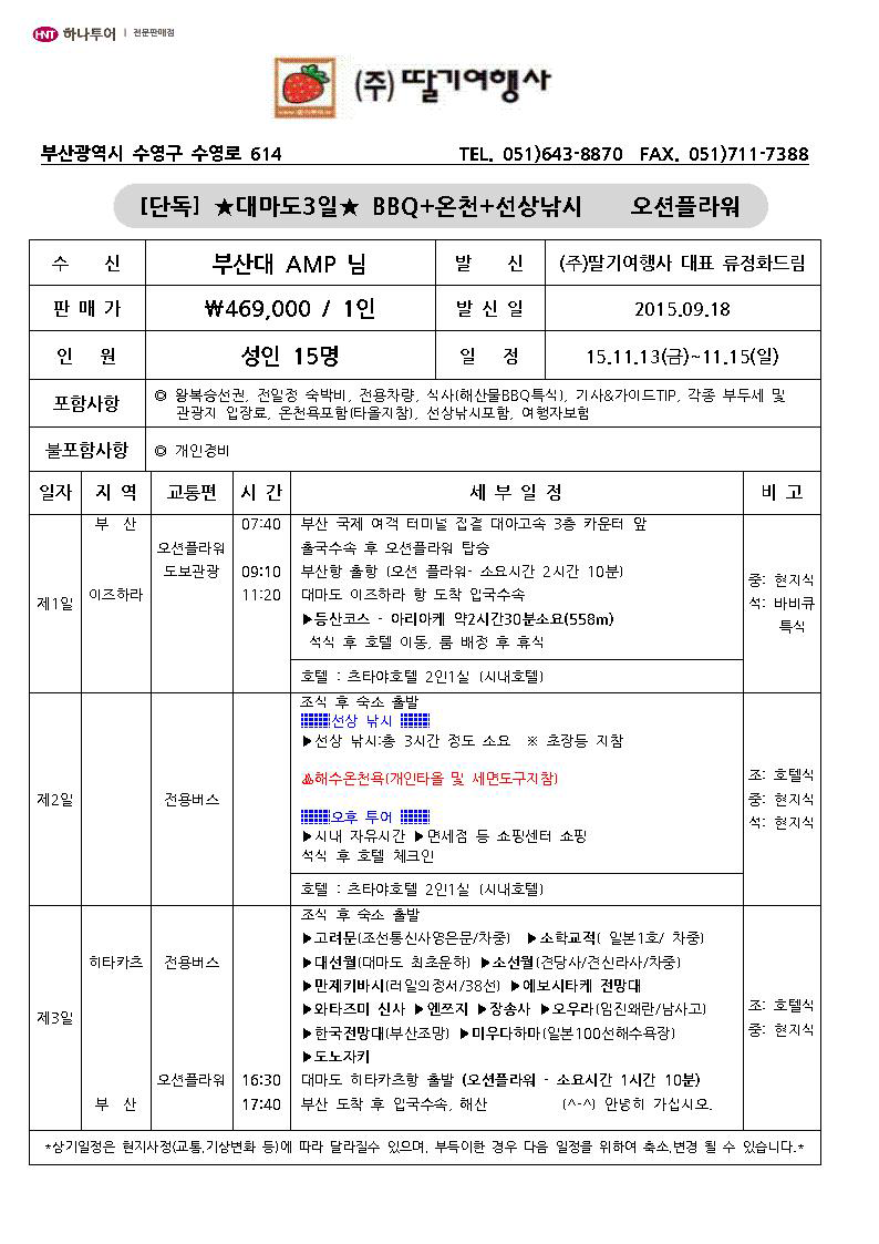 그리고 여건은 딸기여행사 대표 류정화 님께 보내시면됩니다.