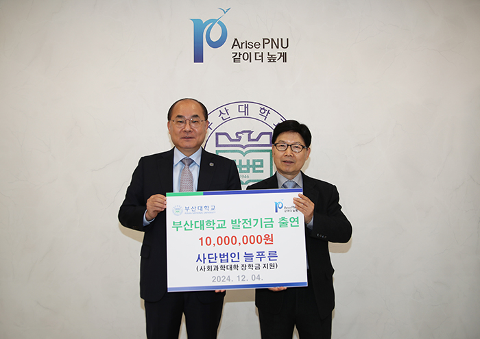 이날 출연된 발전기금 1,000만 원은 부산대 사회과학대학 학생들을 위한 장학금으로 쓰일 예정이다.