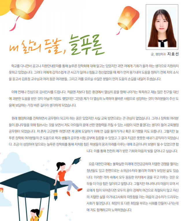 지효선 장학생 수기 관리자ㅣ2020.08.11ㅣ4836 첨부파일 Cap 2020-08-11 18-18-19-628.jpg[0.16MB] 지효선 장학생 수기 목록 이전글 이진주 장학생 수기 다음글 다음글이 없습니다.