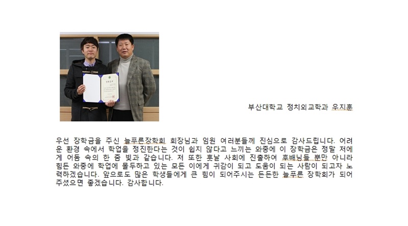 우지훈 장학생 수기. 기획이사 이상진ㅣ2015.09.17ㅣ10472 첨부파일 장학생5.jpg[0.06MB] 우지훈 장학생 수기. 목록 이전글 정지용 장학생 수기. 다음글 강민희 장학생 수기